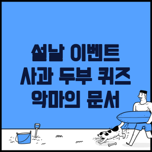 박첨지라는 NPC가 차례상을 준비하는 퀘스트입니다. 메랜 사과, 달걀, 두부, 대추, 배, 감, 밤 등의 재료를 모아 차례상을 차리면 보상을 받을 수 있습니다. 이 퀘스트를 통해 경쿠와 선택 슬롯 확장권을 얻을 수 있습니다.
